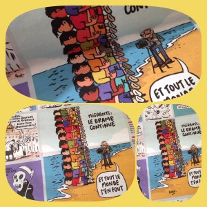 En 4ème de Couverture du Charlie Hebdo du 4 novembre 2015 un dessin de coco sur les migrants